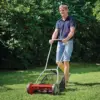 El cortacésped manual GC-HM 400 de Einhell es un segadora funcional y robusta sin accionamiento por motor, con el que se pueden cortar superficies de césped de hasta 250 m2 de forma limpia, silenciosa y además respetuosa con el medio ambiente. El husillo de corte con rodamiento de bolas está equipado con cinco cuchillas de acero de alto valor para anchura de corte de 40 cm. El ajuste de altura de corte de 4 niveles se puede adaptar individualmente de 13 mm a 37 mm. El rodillo de rodadura de plástico tiene un diámetro de 46 mm. La segadora manual está equipada con ruedas de gran superficie cuidadosas con el césped. Un larguero de guido doblado ofrece una ergonomía óptima en el trabajo. La posición de estacionamiento permite el almacenamiento seguro y sencillo de la segadora. El colector de hierba con capacidad de 27 litros es extraíble y fácil de vaciar.